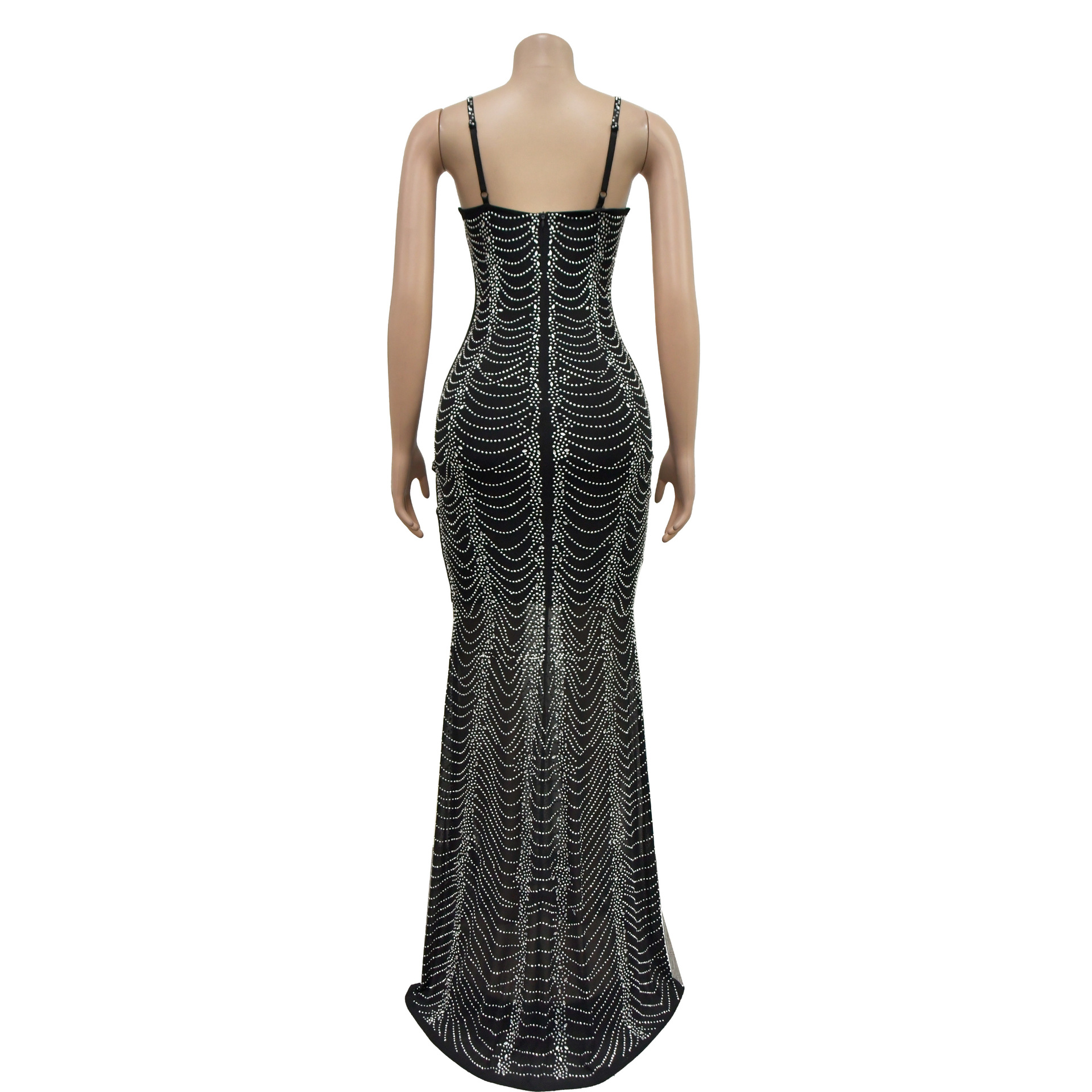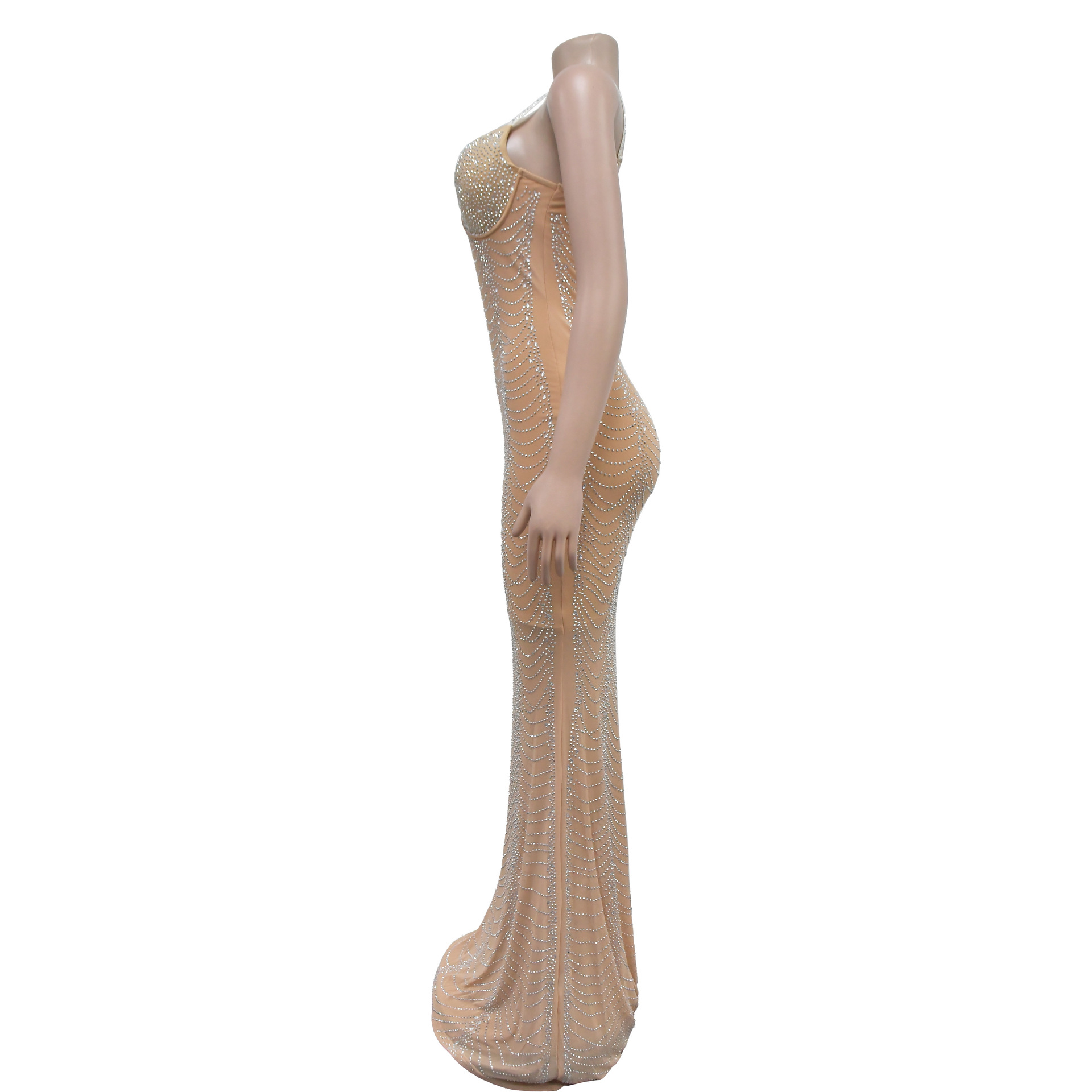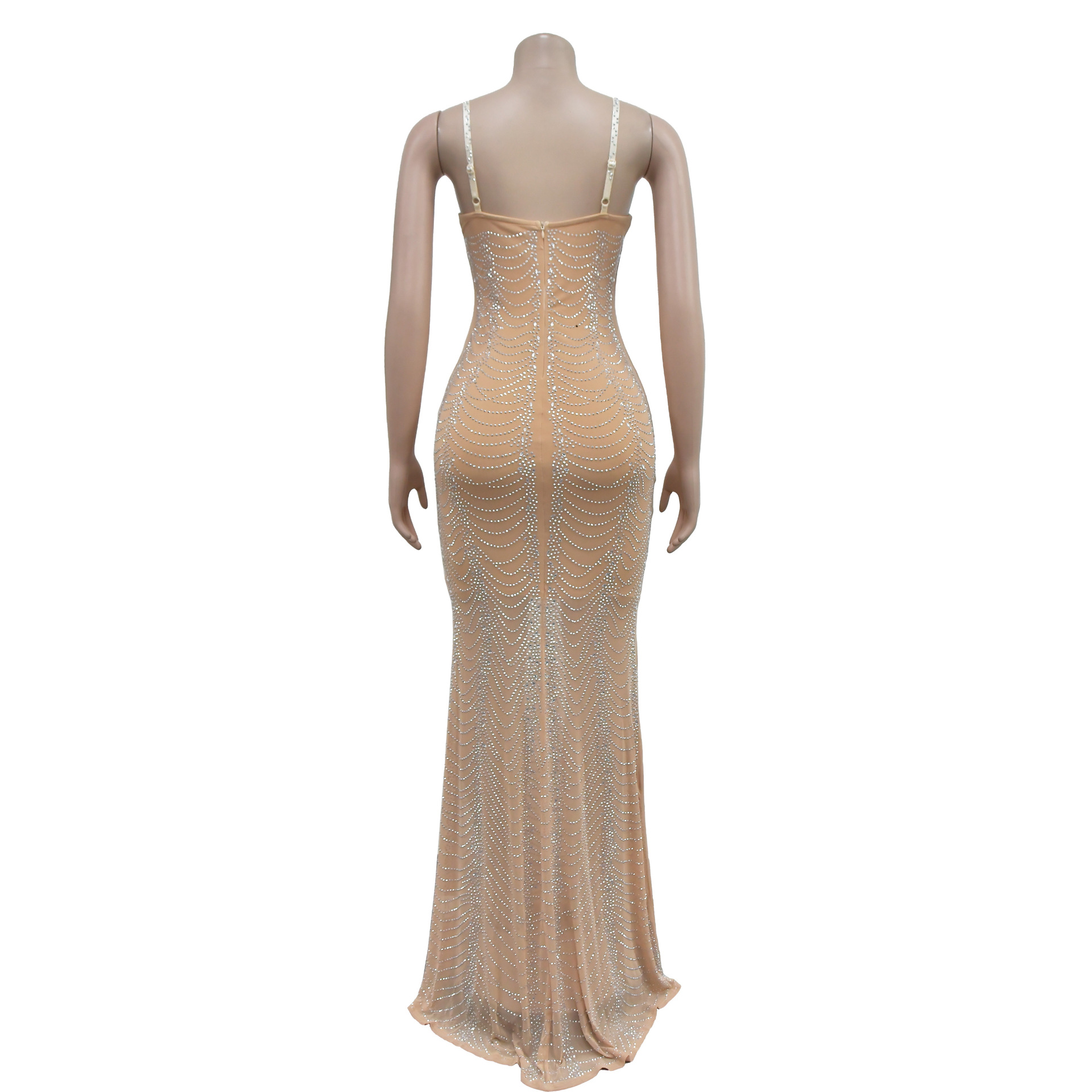 European And American Fashion Women's Pure Color Mesh Rhinestone Strap Dress