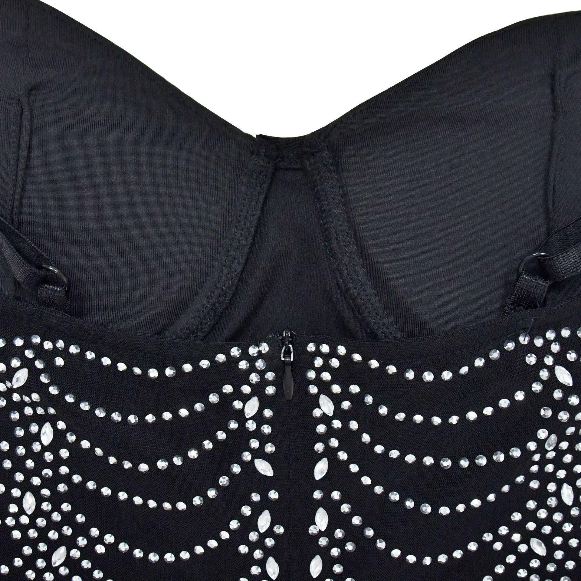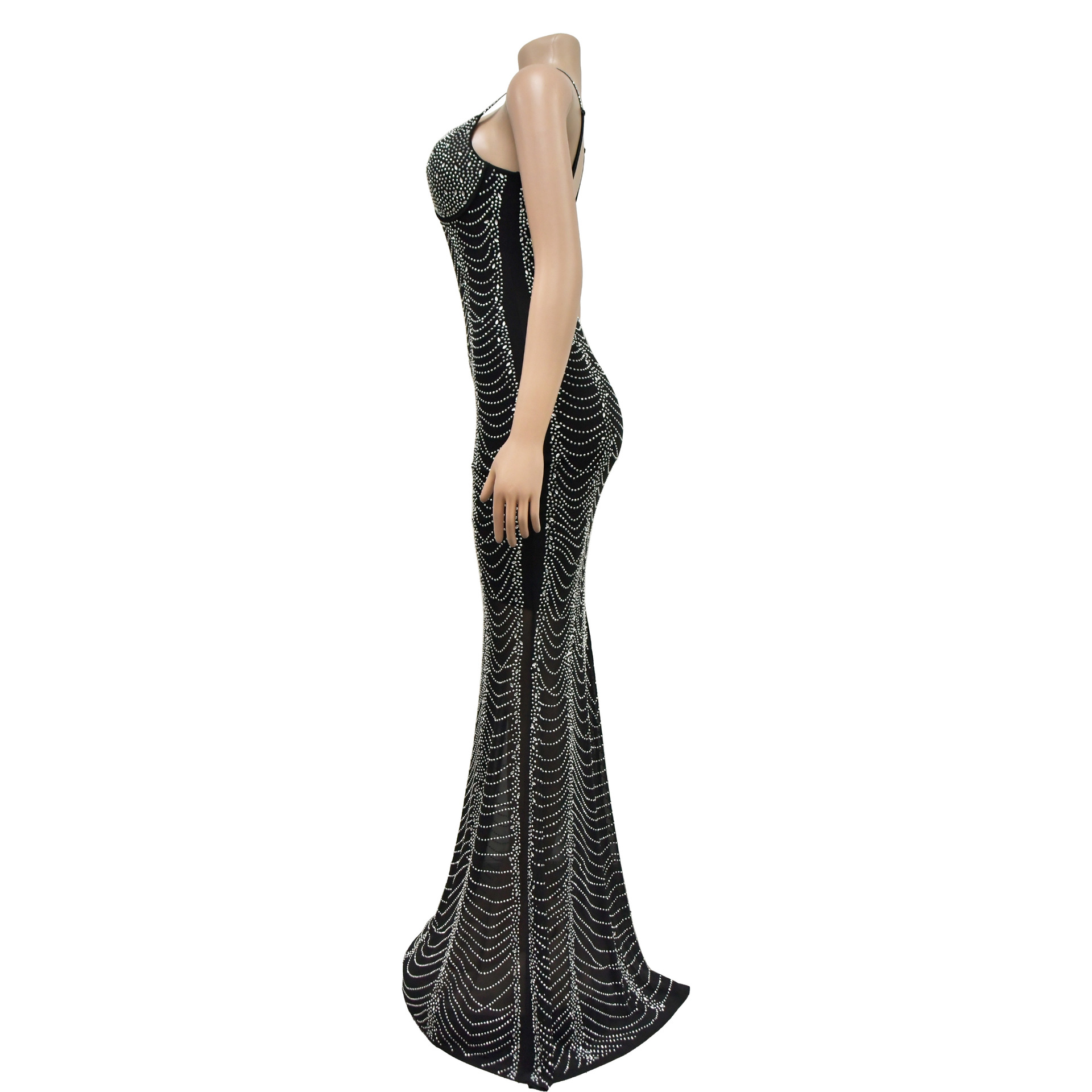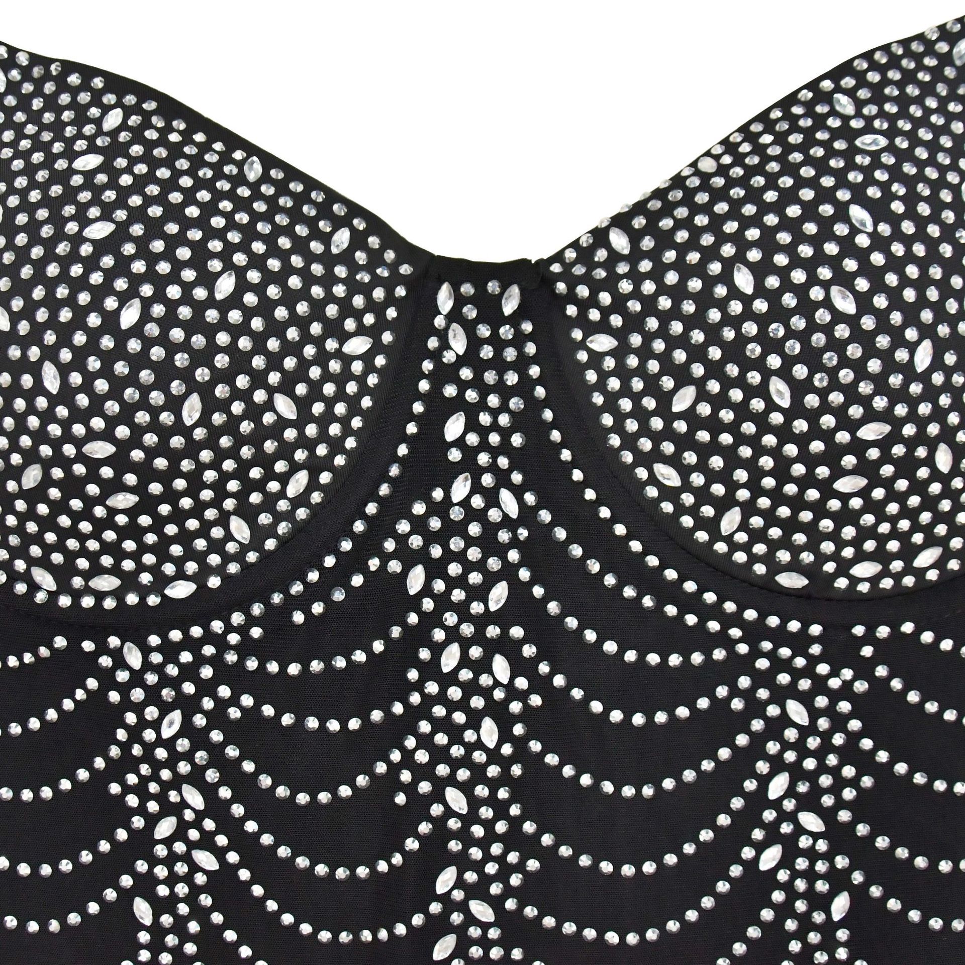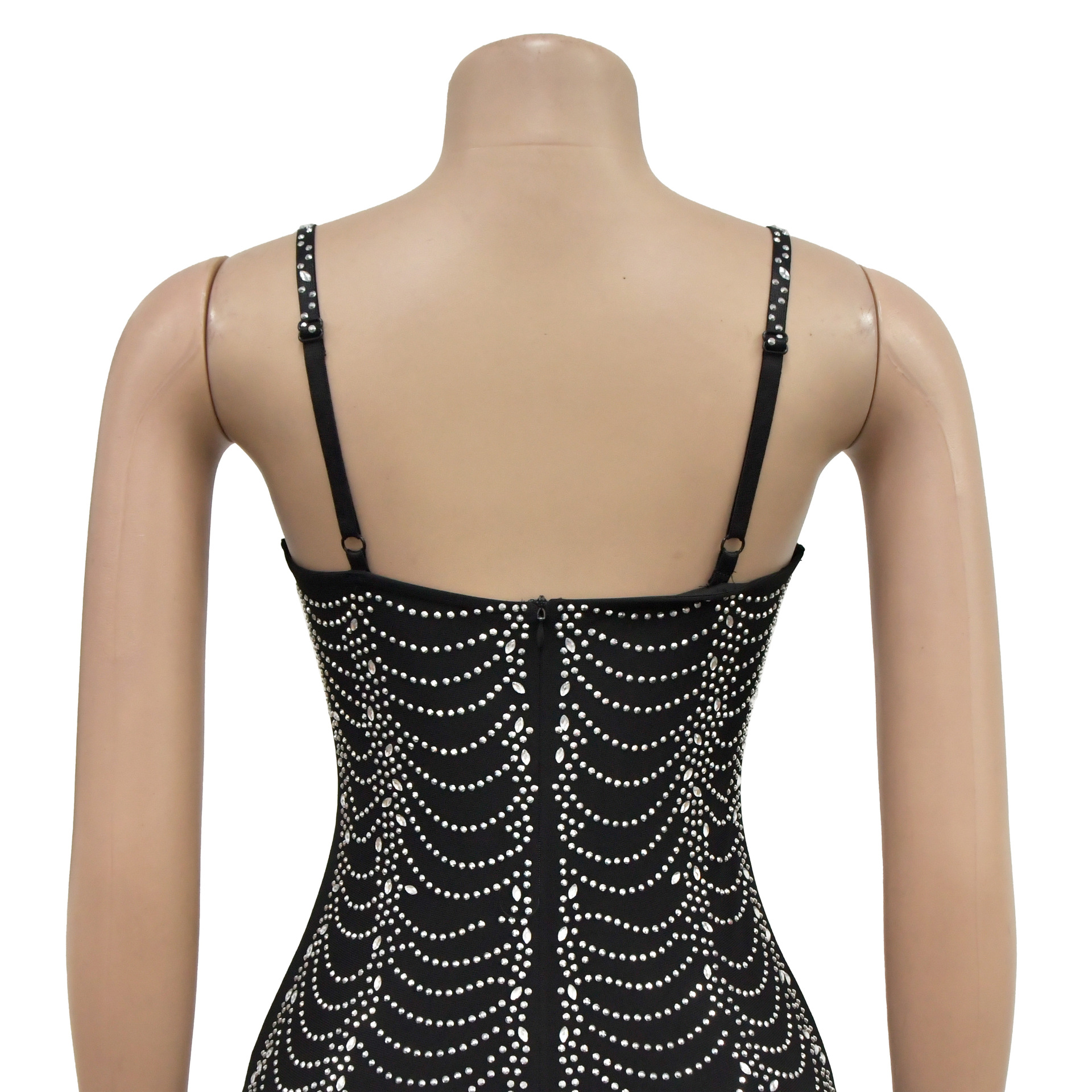 European And American Fashion Women's Pure Color Mesh Rhinestone Strap Dress